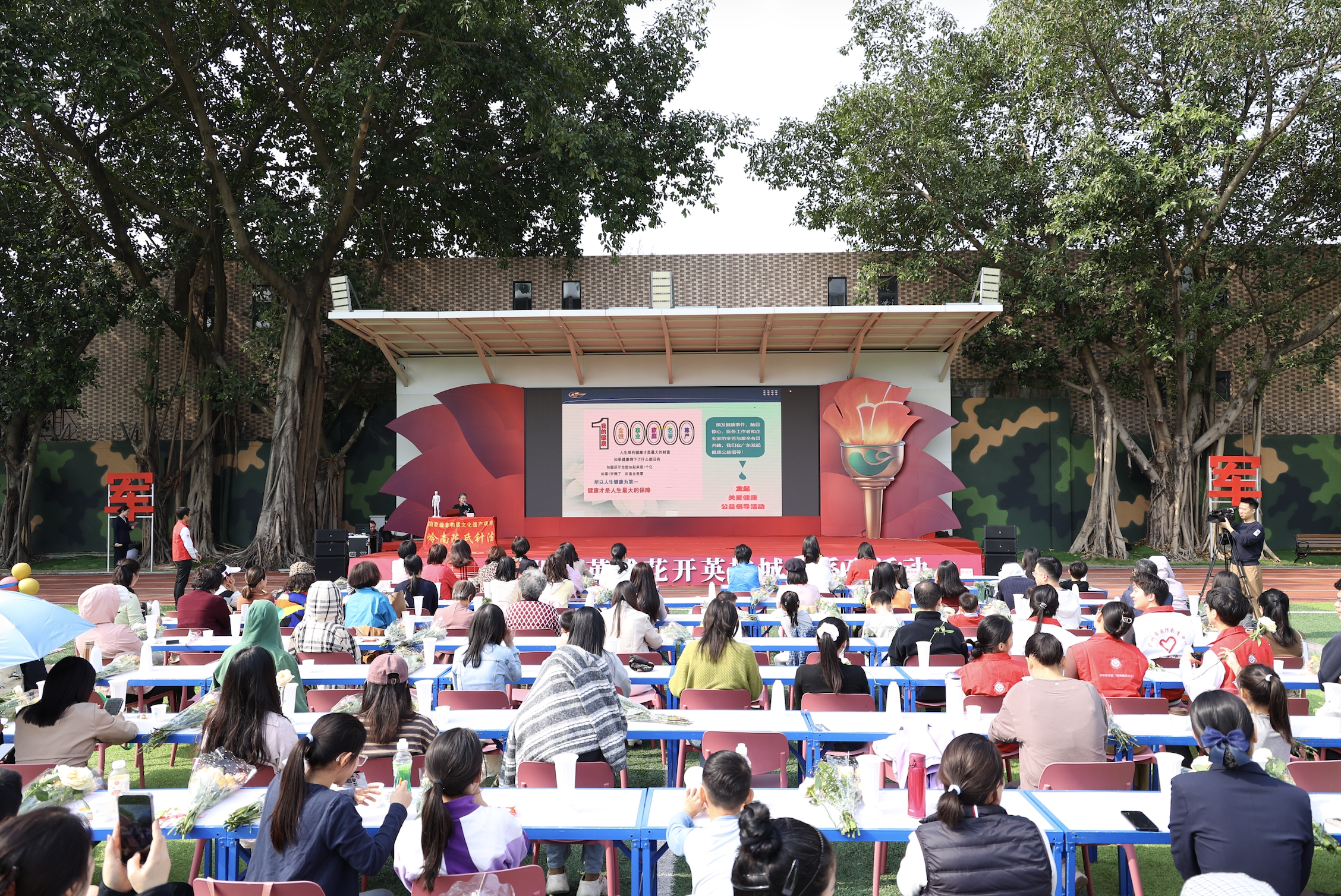 当非遗匠心邂逅国防初心,现场的精彩便接踵而至。国家级非物质文化遗产“岭南陈氏针法”代表性传承人陈秀华教授用一场干货满满的中医健康知识讲座,瞬间点燃了现场热情。从女性日常养生秘诀到岭南飞针的非遗智慧,陈教授将专业的中医知识变成易懂好用的“养生干货”,让现场嘉宾听得津津有味。