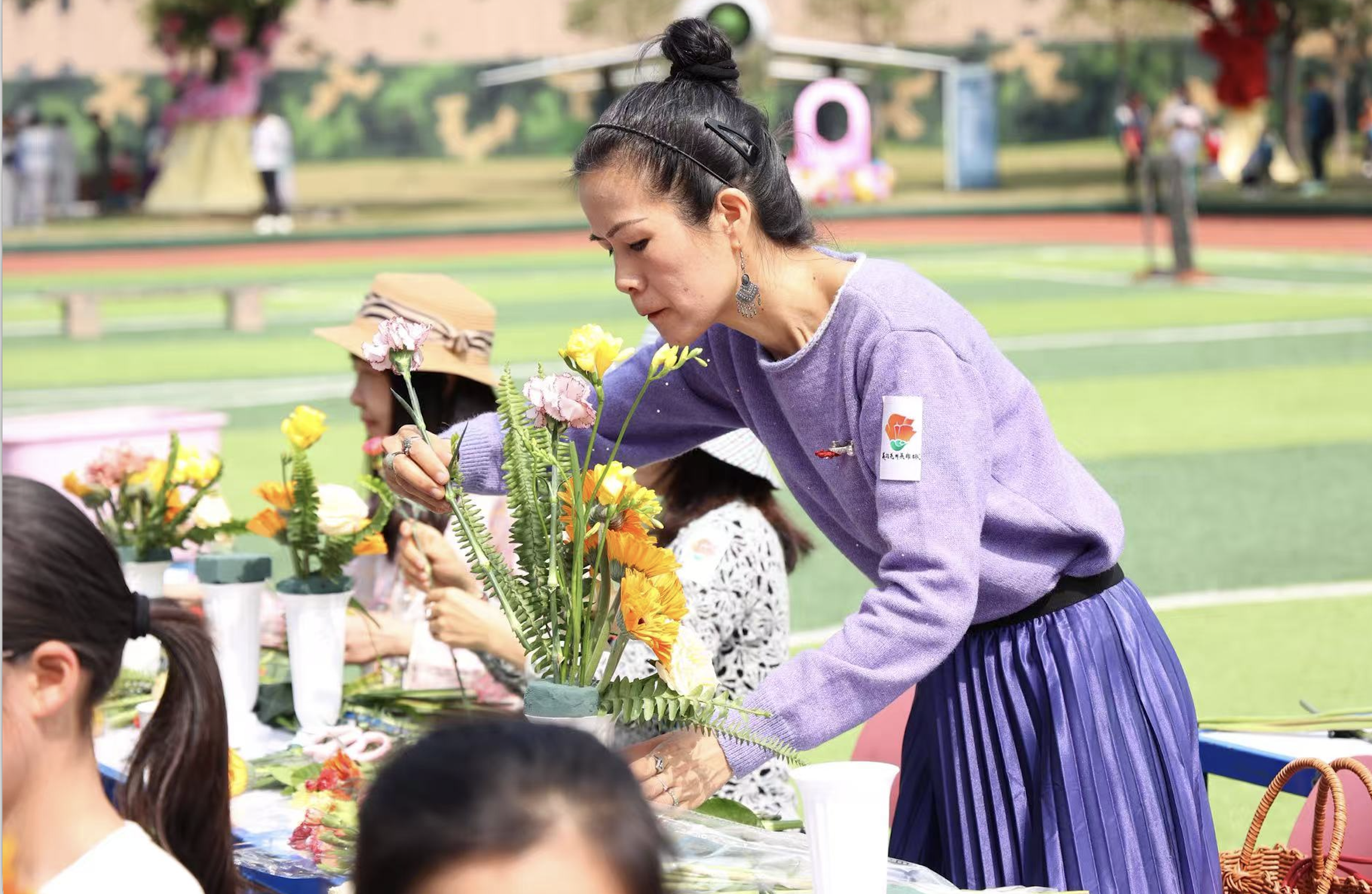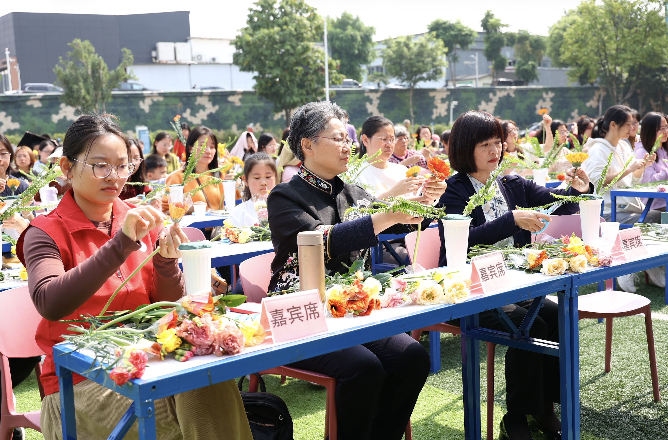 巧手生花漾,刚柔铸丹心,插花艺术体验环节更是将活动推向高潮。一剪一插、一捏一摆间,英雄花的风骨与女性的柔情融于指尖,花艺作品宛如一幅鲜活的“巾帼群芳图”。百余位巾帼代表在轻松愉悦的氛围中感受美好、悦纳自己,更在红棉芬芳与国防情怀的浸润中,尽显“她力量”在新时代中自信昂扬的别样风采。